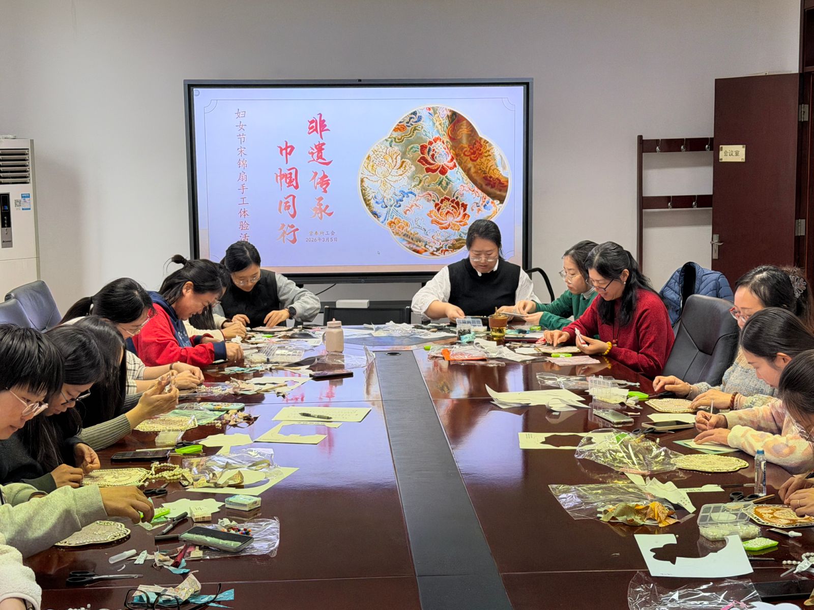 营养所工会举办“非遗传承 巾帼同行”妇女节宋锦扇手工体验活动